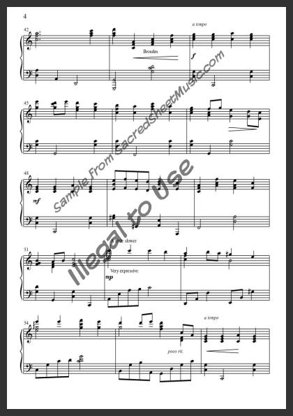 This is a majestic and exciting arrangement of this beloved hymn of God's love. With its motivic harmonic nuances, an intermediate pianist should find this piece fascinating and enjoyable to learn.