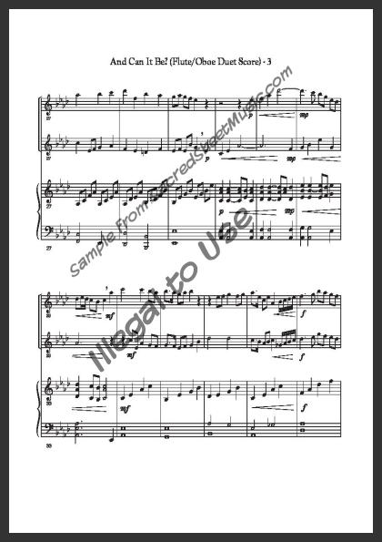Includes the full score with piano accompaniment and separate duet parts for Flute I and Oboe II.