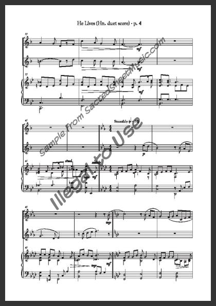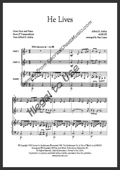 Horn duet with piano accompaniment A bright, uplifting arrangement that celebrates Christ’s resurrection – ‘I serve a risen Savior.’. Moderately Advanced level of difficulty.