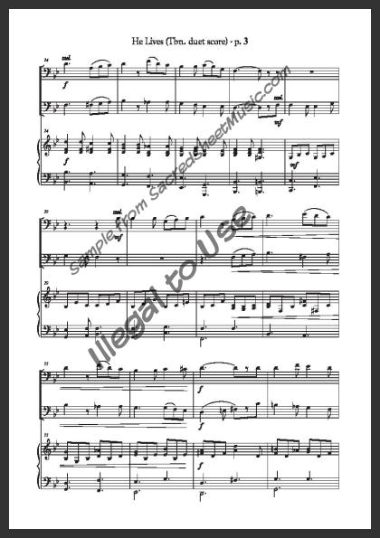 Trombone duet with piano accompaniment A bright, uplifting arrangement that celebrates Christ’s resurrection – ‘I serve a risen Savior.’. Moderately Advanced level of difficulty.