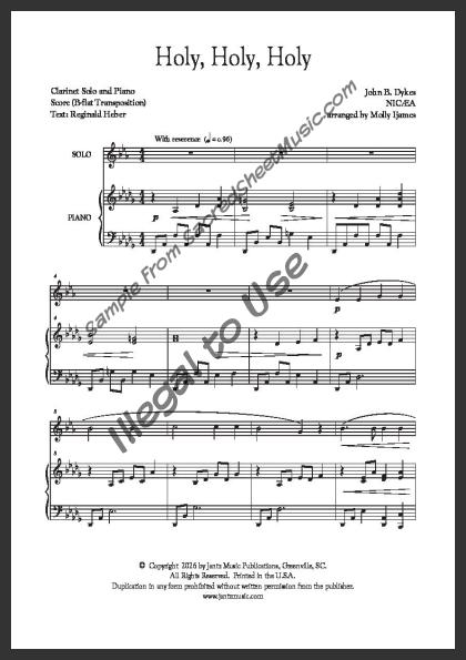 Clarinet solo with piano accompaniment. A beautiful, flowing arrangement of this older hymn praising our holy and merciful ‘Lord God Almighty!’ Moderate level of difficulty.