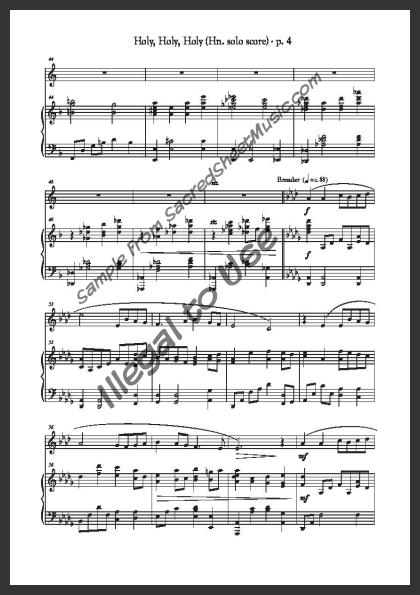 Horn solo with piano accompaniment. A beautiful, flowing arrangement of this older hymn praising our holy and merciful ‘Lord God Almighty!’ Moderate level of difficulty.