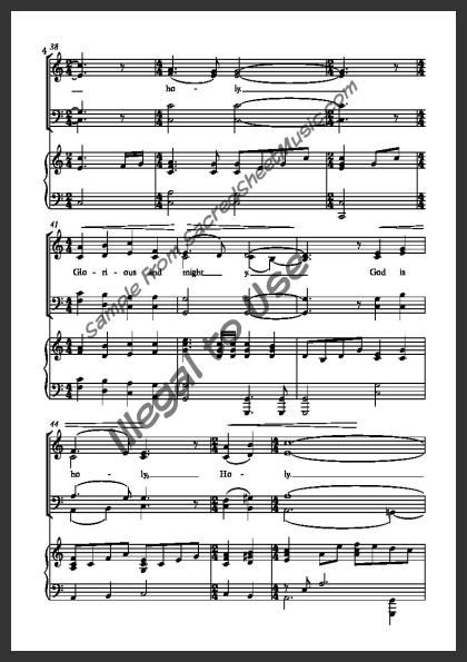 This work is conceived as a sacred symphonic anthem, intended to convey the grandeur of God's holiness through restraint and musical pacing. The impact of this piece will be felt not through constant volume, but through dynamic expression and delayed climactic release. Singers are encouraged to sing long phrases. adhere to clean cutoffs, and reverent pacing, allowing silence and resonance to carry theological weight. The work unfolds from mystery to proclamation, from the heavenly hosts extoling God in all His power and majesty to an invitation to participate in celebrating Christ's triumph. It finally settles into a reverential moment of unashamed worship, an Alleluia of radiant stillness.